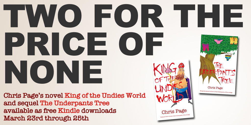 I tweeted yesterday that you could get a free Kindle download of King of the Undies World through the 25th. Turns out I pressed the wrong button and made The Underpants Tree a free download instead. My apologies for the confusion.